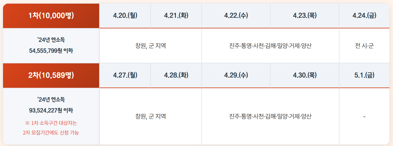 1차는 저소득층을 중심으로 하고, 2차는 기준이 완화된 구조입니다. 이러한 구분은 신청이 집중되는 것을 방지하기 위한 것으로 보입니다.